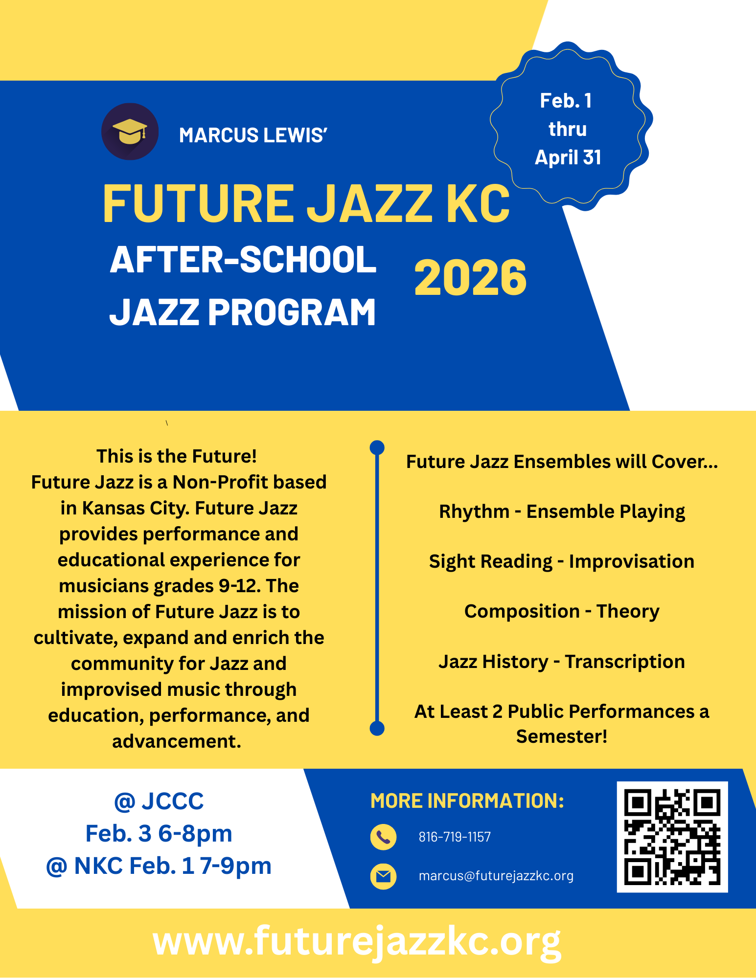 Future Jazz KC is a federally recognized non-profit based in Kansas City. We provide performance and educational experience for musicians grades 6-12.